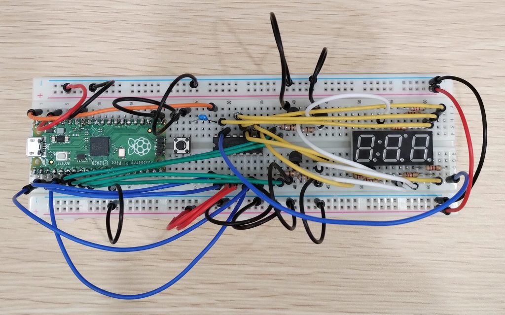 とにかくこの本の記載は良いですよ。ちゃんとカソードコモンの3桁LEDを使って、桁ドライブ用トランジスタはちゃんと使いやすいNPNを使って、エミッタを直にGNDで使える!