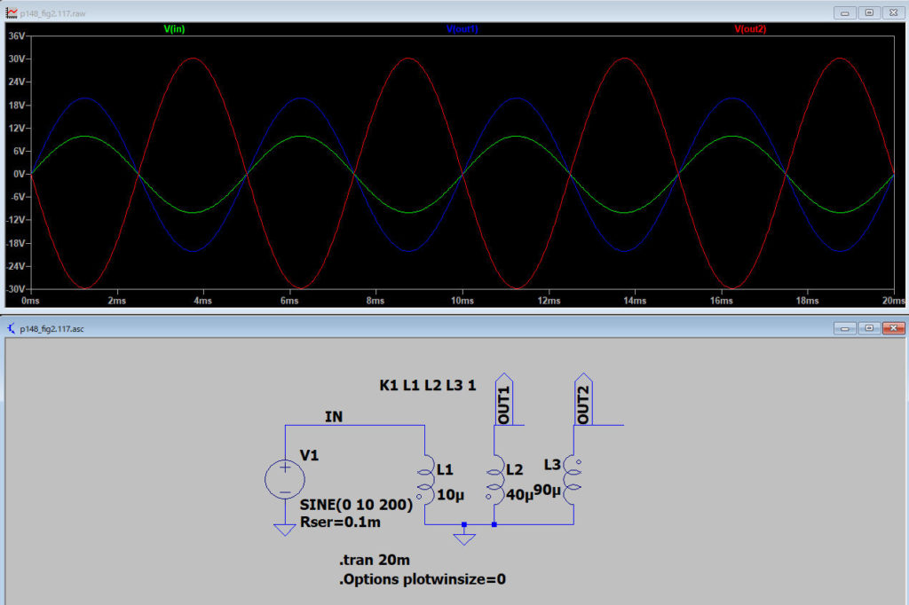 次は147ページの、相互コンダクタンス。トランスの例題。148ページの、図2.117の例題をやってみる。これ。