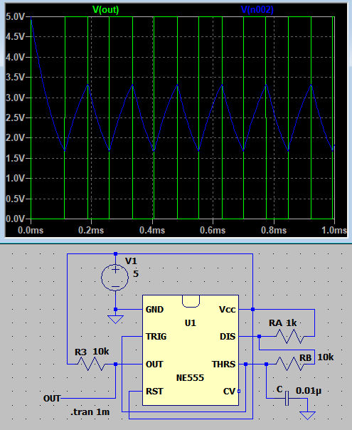 この本の81ページの図22。あの555がちゃんと載っているし、もっと驚異なのはLTspiceにも標準装備であることだ。こういうふうにいろんなICがちゃんと揃っていればLTspiceはもっと使いやすくなるのに・・・でも宣伝用無料ソフトなのでそれは無理だろう。こういうの、廉価有料版で、そういうニーズを満たしたのを作ればいいのに。。。な~んて、買う人がいないんだろう(^^♪